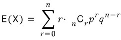 이항분포의 기댓값에서는 위 식에서 확률변수에 해당하는 xi에 독립시행의 '횟수'에 해당하는 r을, 확률 pi에 특정 사건이 n번 중 r번이 일어날 독립시행의 확률 nCr p^r q^(n-r)을 대입하면 됩니다.
